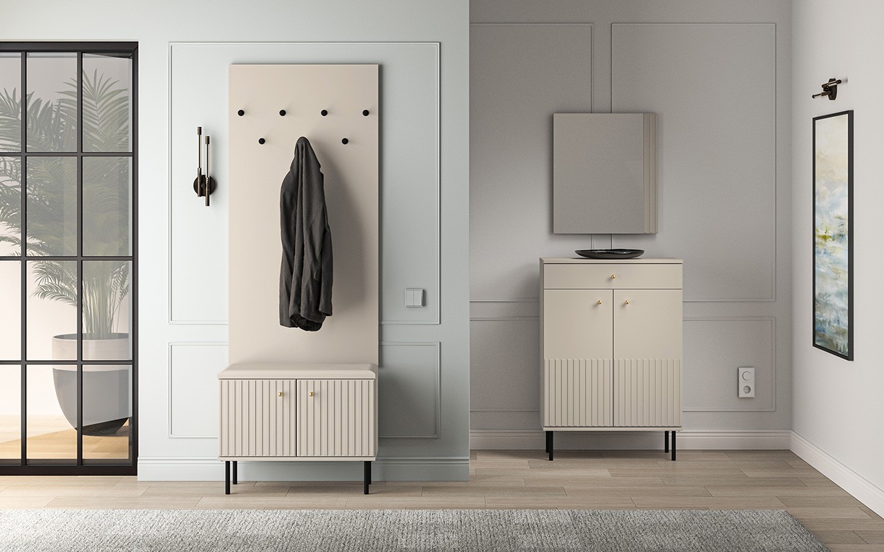Sophie kolekcija – tai stilingų, funkcionalių ir kokybiškų baldų serija, kuri puikiai tinka įvairiems namų kambariams. Elegantiški kašmiro atspalviai, frezuoti frontai ir aukštos kokybės apdailos detalės suteikia baldams prabangos jausmą, o praktiškos funkcinės savybės – kasdienio komforto.