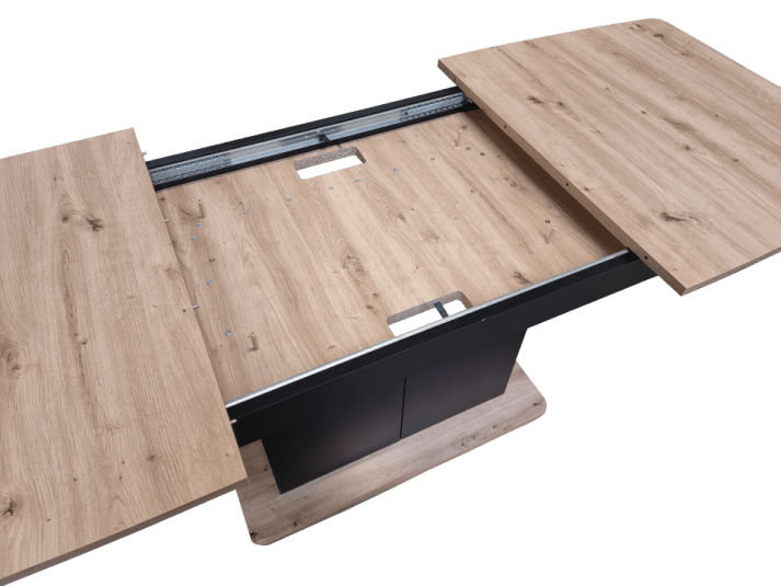 Papildomai įdedamos lentelės stalą prailgina 140-175-210 cm.