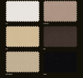 Beicuoto medžio spalvos: ruda, vyšnia, naujasis graikinis riešutas, Milano graikinis riešutas, graikinis riešutas 24, irisas, vyšnia 02, venge. Dažyto medžio spalvos: baltas Milano, baltas Wersal, juodas, pilkas, Lagoso kašmyras, ME-03 kašmyras, Milano kašmyras, kremas, vanilė. Dažyto medžio su patyna spalvos: balta patina, kašmyro patina, kreminė patina.