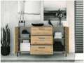 Išskirtinio ąžuolo dekoro derinys su juodomis kojomis ir rankenomis yra puikus sprendimas šiuolaikiniam interjerui. Šios kolekcijos prieškambario baldai, puikiai tiks tiek mažam, tiek dideliam prieškambario interjerui.