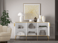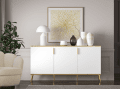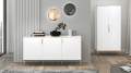 Viterbo kolekcijos baldai, puikus pasirinkimas moderniai svetainei ar miegamajam. Baltas dekoras kartu su metalinėmis kojelėmis ir juvelyrinio aukso spalvos rankenomis įneša į interjerą prabangos atmosferą su ekstravagancijos užuomina. Baldų ryškumas ir pobūdis vizualiai padidina kambario erdvę.