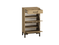 Išskirtinio ąžuolo dekoro derinys su juodomis kojomis ir rankenomis yra puikus sprendimas šiuolaikiniam interjerui. Šios kolekcijos prieškambario baldai, puikiai tiks tiek mažam, tiek dideliam prieškambario interjerui.