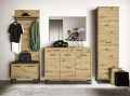 Išskirtinio ąžuolo dekoro derinys su juodomis kojomis ir rankenomis yra puikus sprendimas šiuolaikiniam interjerui. Šios kolekcijos prieškambario baldai, puikiai tiks tiek mažam, tiek dideliam prieškambario interjerui.