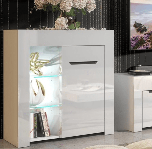- Lentynos ir vitrinos suteikia svetainei lengvumo ir padeda vizualiai praplėsti erdvę. Jos gali būti tiek atviros, tiek užidaromos ar su stiklinėmis durelėmis, kas leidžia derinti funkcionalumą su estetika. Vitrinos yra puikus sprendimas tiems, kurie nori stiliaus detale paversti vertingus daiktus, tokius kaip indai, suvenyrai ar meno kūriniai.