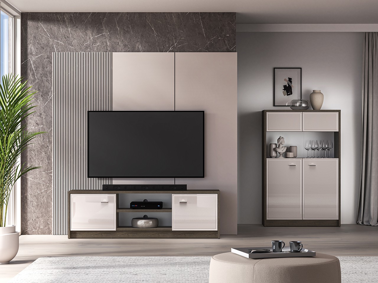 Spalva, 1 galimos spalvosDąb Windmill Dark / Cashmere Połysk.Prekė užsakoma, gamybos ir pristatymo terminas: iki 35 d. d.