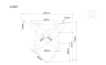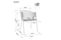 Plotis - 55 cm, aukštis - 77 cm, sėdimos dalies gylis - 44 cm, sėdimos dalies aukštis - 47 cm.