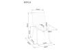 Plotis - 48 cm, aukštis - 84 cm, sėdimosios dalies gylis - 46 cm, sėdimos dalies aukštis - 51 cm.