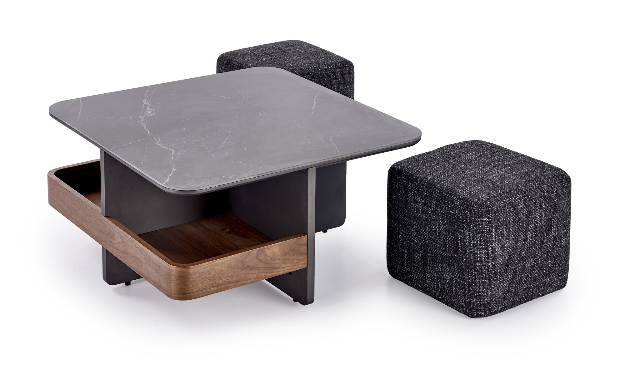 Žurnalinis staliukas ir 2 pufai.